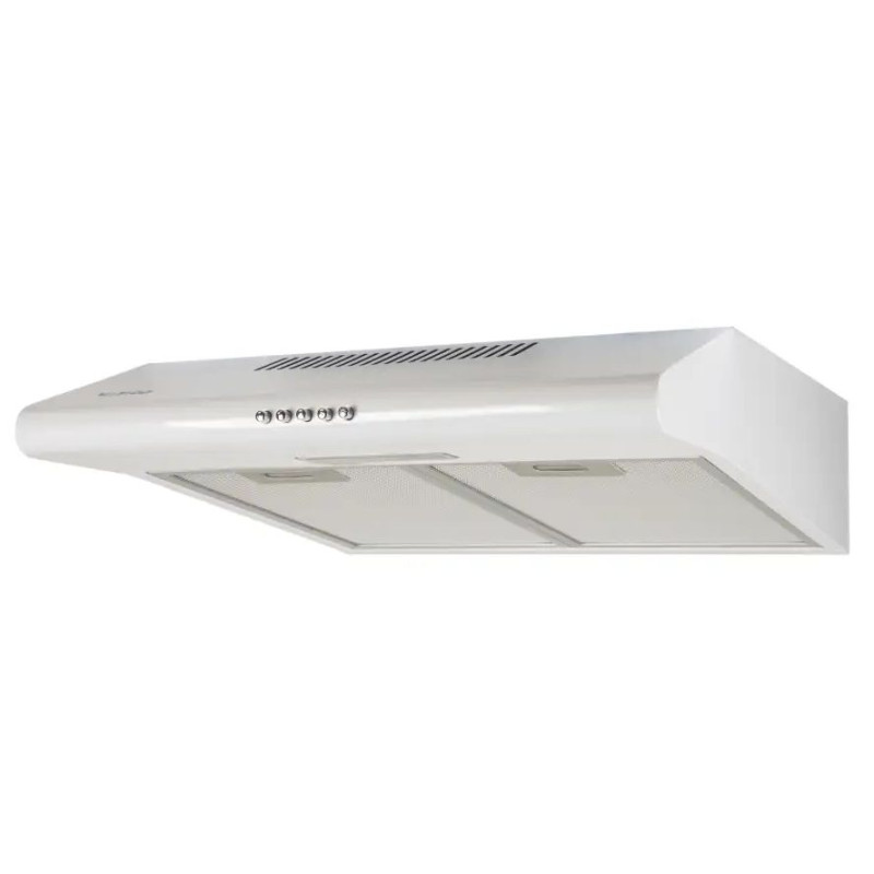 Опис:Пристінна витяжка плоска. Продуктивність 320 м3/год. Управління кнопкове. Розміри (ШхГ): 597х511 мм. Оснащення: освітлення: лампа розжарювання, 40 Вт х 1; дисплей – ні; таймер – ні. Колір білий.