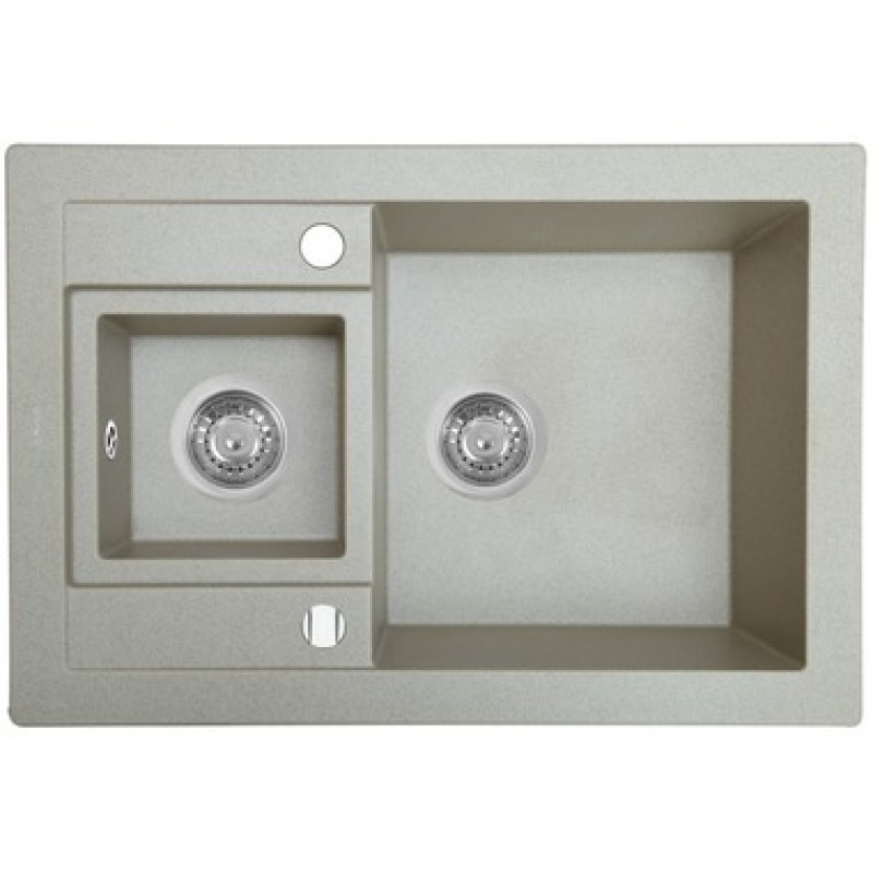 Колір: пісочний. Розміри миття (ШхДхГ): 670х460х184 мм. Ширина шафи: 60 см. Додаткова інформація: отвір під змішувач; pop-up система; тиха, шум води практично не чутний; стійка до високих температур (до 280 ° С); гігієнічна та екологічно безпечна, незважаючи на те, що до складу крім 80% гранітної крихти входить 20% іншого сполучного полімеру (смола); не змінює колір у процесі експлуатації.