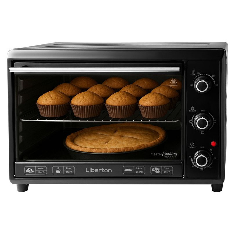 Опис:Компактна піч – настільна духовка. Потужність печі 2000 Вт. Об'єм духовки 40 (л). Управління механічне. Конвекція (вентилятор) – ні. Гриль – є. Вертел - ні. Особливості та комплектація: грати для гриля, деко. Колір чорний.