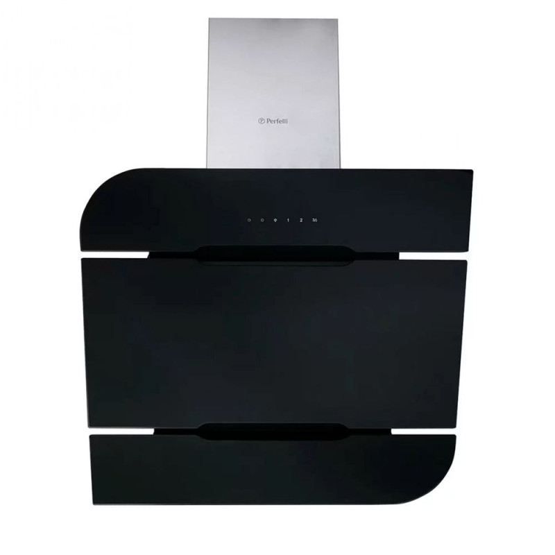 Опис:Похила витяжка. Рівень шуму 40-62 дБ. Управління сенсорне. Оснащення: освітлення: LED 1х6; таймер – є. Колір чорний.