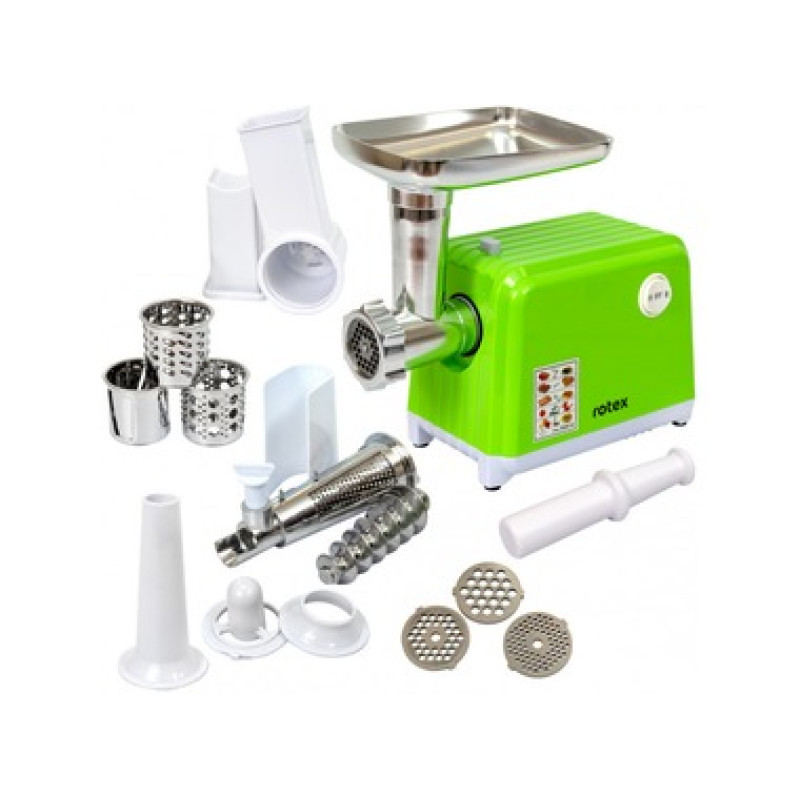 Опис:Потужність м'ясорубки 2000 Вт. Продуктивність 1,5 кг/хв. Система реверсу: є. Кількість ґрат: 3 діаметр отворів 3 мм, 5 мм, 7 мм. Насадка для приготування: є. Насадка "кеббе": є. Насадка для томатного соку.