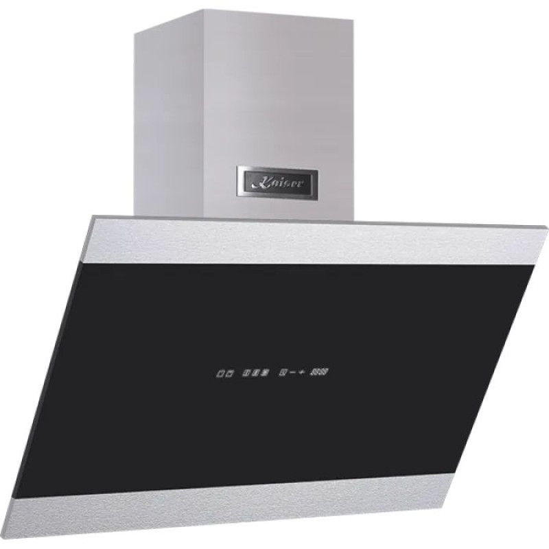 Опис:Похила витяжка. Продуктивність 1250 м3/год. Рівень шуму 74/69. Управління сенсорне. Оснащення: мотор – 1; освітлення: світлодіодні лампи (2 х 2,5 Вт); дисплей – є; таймер – є. Колір - сталь/чорний.