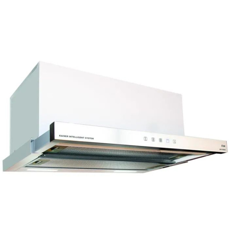 Опис:Витяжка телескопічна. Продуктивність 910 м3/год. Рівень шуму 59/61. Управління сенсорне. Оснащення: мотор – 1; освітлення: світлодіодні лампи (2 х 0,5 Вт); дисплей – є; таймер – є. Колір білий.