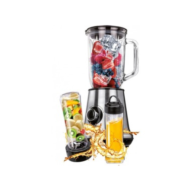 Додаткова інформація: отвір у кришці, через який можна додавати продукти під час роботи, протиковзкі ніжки. Комплектація: 2 пляшечки із кришками ємністю 600 мл. Колір: нержавіюча сталь.