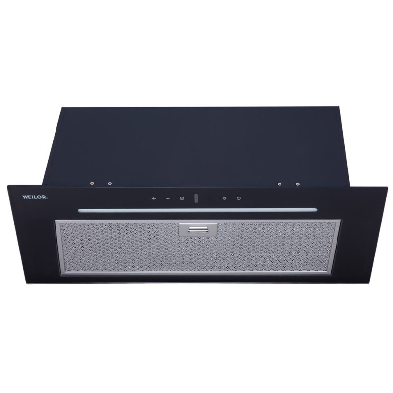 Опис:Витяжка, що вбудовується. Продуктивність 1300 м3/год. Рівень шуму 59–70. Управління сенсорне, пульт ДУ. Оснащення: мотор – 1; освітлення: LED 1х8 Вт; таймер – є. Колір чорний.