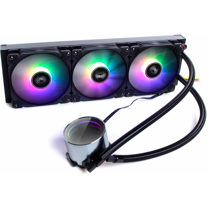 400 мм радіатор системи забезпечує неймовірно високу площу розсіювання. Три 120-мм кулери оснащені RGB-світлодіодами, що дозволяють реалізовувати кольорові світлові ефекти. Дані вентилятори з гідравлічним підшипником та продуманою формою лопатей забезпечують ідеальний баланс між рівнем шуму та ефективністю охолодження.